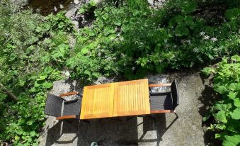 You live in a typical landmarked half-timbered house in the middle of the historic old town of Monschau. The Rur flows directly past the house. Through the quarry stone cellar one has direct access to the water (small terrace at the river).