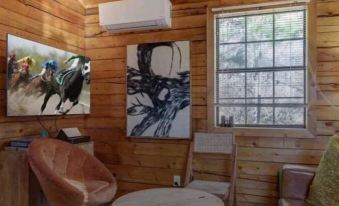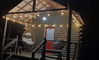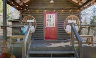 Take in the beauty of nature from the front porch, complete with two egg-chair hammocks. This is the perfect place to spend a weekend, connect with nature, and recharge your batteries. Book your stay at this magical cabin today!