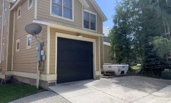 You have access to a large porch from your front door with private Weber gas grill as well as access to a back patio with the hot tub (open 8AM-10PM). You will have access to a one car private garage (no RVs or trailers allowed). Bring your car, drive it around or park it and take the free "locals" town/ski bus from the convenient stop at the roundabout! Winter bus service is every 30 minutes and every 20 minutes in the summer located just steps away. Subject to change so please check mtnexp.org.