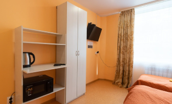 The hotel offers 6 standard rooms. Each room is equipped with a bathroom, kettle, microwave, TV, single beds with orthopedic mattresses. It offers guests a small kitchen area, equipped with everything necessary for cooking, Wi-Fi, ironing and washing equipment in the public domain, cleaning.