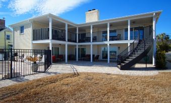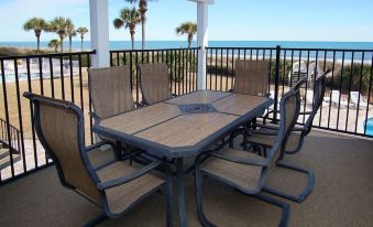 This 7 bedroom, 5.5 bathroom oceanfront home located in southern Myrtle Beach has been recently renovated and features a private pool and magnificent views of the ocean from all over the house. This 2 story home features a private pool, large patio & deck area, gas grill, private beach access with shower, 2 fully equipped kitchens, Wi-fi internet access, and beautiful views of the beach and ocean from many rooms and the upstairs balcony.