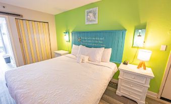 AMENITIES: Starting 9/1/21, guests will not have access to the onsite restaurants (including the tiki bar and coffee shop), laundry facility, kids' slide area, or fitness center. All other water features are available, except the indoor pool in the Schooner building.