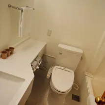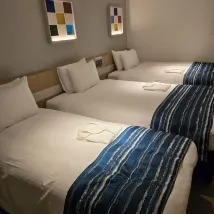 Wir hatten dieses Mal ein Dreibettzimmer gebucht, das kaum Platz für einen Koffer bot. Das Hotel bot jedoch eine große Auswahl an Getränken, darunter Sake und individuelle Cocktails. Das Hotel selbst verfügt über einen kleinen Swimmingpool, das Onsen hingegen war enttäuschend: Es gab nur zwei kleine Becken zum Baden.