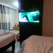 I was a little bit upset cause I had booked two rooms and every didn’t have a window (it was written about that, but I made a point on it and payed a little bit more (10 y) for the possibility of having a window if it could be possible). That’s why firstly I cancelled booking and made it again for the rooms more expensive.