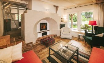 The bakery was recently completely renovated and the old oven was removed. In this way, space could be created for a completely new room. The heart of the bakery, the fireplace room. Cozy seating areas and warm colors invite you to relax. Large windows provide plenty of daylight, with a direct view of the countryside. The glass fireplace connects the two living rooms and is accessible from both sides. Here you can spend atmospheric evening hours.