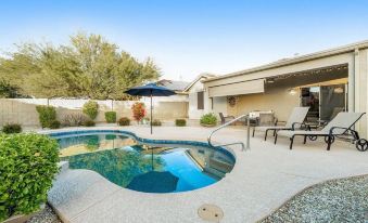 NEW! Cozy desert getaway with private backyard and seasonal pool!