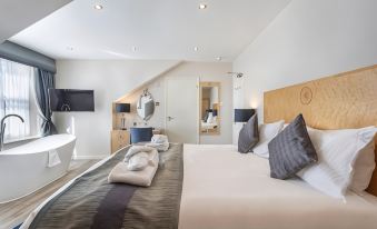 In der Unterkunft The Moorland Hotel, Haytor, Devon - The Coaching Inn Group sind alle Zimmer ergänzt mit einem Kleiderschrank, einem Flachbild-TV, einem eigenen Badezimmer, Bettwäsche und Handtüchern.