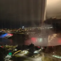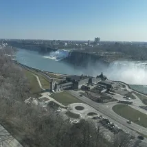 Das Hotel liegt auf einem Berg neben den Horseshoe Falls, ganz in der Nähe des Wasserfalls. Auch die Aussicht ist die beste unter den Hotels. Das größte Highlight hier ist, dass man vom Zimmer aus den Panoramablick auf die drei Unterfälle der Niagarafälle (Horseshoe Falls, American Falls und Bridal Veil Falls) genießen kann, und zwar aus der Vogelperspektive, ganz zu schweigen davon, wie cool es ist Ist!