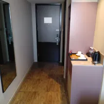 Es gibt kostenlosen Selbstbedienungskaffee und einen Waschmaschinenraum, was sehr praktisch ist. Sauber und hygienisch, das Zimmer ist sehr geräumig und es gibt ein Sofa, was gut ist.