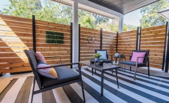 Out the backdoor is where you will find the private and self contained patio. Designed comfortably to visit with your family, friends and loved ones or take some solo time while enjoying your coffee and a good book in the morning or a glass of wine at the end of your day.