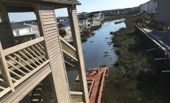 This newly renovated, large 3rd floor 2BR, 2BA walk-up condo features a warm décor including a new, nicely appointed living room and a 70”Smart HDTV, new washer and dryer, queen sleeper sofa with gel foam mattress, and new wall mounted smart TV in both bedrooms. The master has a queen been bed, private bathroom and direct access to a deck. The second bedroom has 2 twins and also has direct bathroom access. The back deck overlooks the marsh and has an ocean view. The front deck has a Cherry Grove and also has an ocean view. The new renovation includes a new stove, ceiling fans, TV’s, living room furniture and water fixtures. It is just 1 block to the beach and a great quiet place for your vacation or quick get-away! Garage is under the building and has a 6’8” clearance. No golf carts, motorcycles permitted on grounds per HOA.