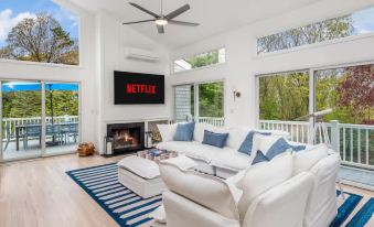 Open concept living /dining with wood burning fireplace is perfect for families and entertaining. Close to hiking trails, golf, kayaking and outdoor activities. Close drive to Montauk. Central AC, wifi and smart TV with access to your Netflix and Spotify accounts.