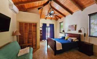 You can easily rent a car from several providers including Centerline, Avis, and Budget Rent-A-Car.About pets:No pets allowed.About checkOut:Check out before 10:00 AM.About children:Children allowed: ages 0-17.Large room adjoining 1 bedroom w. airbed/cot/crib.About customRules:A/C units must be turned off when renters leave the premises, please. We reserve the right to enter the house and turn them off, if left on..Since we live on a tropical island, water is scarce. Please use mindfully. We do not recommend consuming water from the tap in any manner.,There will be an extra fee of $25 per person/ per day on parties of more than 8..About checkIn:Check in after 4:00 PM.About smoking:Smoking is not permitted.About minBookingAge:Minimum age to rent: 25.About events:Events allowed: family gatherings, birthday parties, weddings.Maximum event attendees: 30.