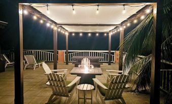4 spacious bedrooms sit on either side of the Great Room, noted for it’s beautiful high Cyprus ceiling. 1 room has 2 King size beds, 2 twin size beds and a futon in a separate area, and a full bath with shower. 1 room has a king size bed and a full bath with shower. 1 room has a queen size bed, a futon, and a full bath with shower. And 1 room has a queen size bed, a futon, and a half bath in the room with an outdoor shower. There is also a cot that can be used if needed. There is a sitting room with a full scale entertainment center, 60” TV, and bar. We have Starlink hi-speed WIFI.