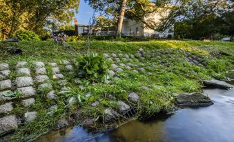 This home features your own small creek, an outdoor firepit (wood not included), and several lounge chairs for you to enjoy the beautiful outdoors! Breathe in the fresh air while watching the local small wildlife (birds and squirrels) play on the gorgeous trees, and enjoy the deep relaxation from reconnecting with nature. The space is perfect for stargazing and deep conversations around the fire.