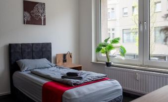 Der nächstgelegene Flughafen ist Flughafen Düsseldorf, der etwa 33 Minuten mit dem Auto von der Unterkunft entfernt (37,1 km) ist.Wie komme ich von dem nächstgelegenen Flughafen zu Livemore24 - Space in Duisburg 24/7 check-in?