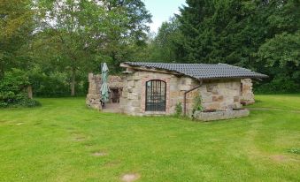 The large lawn invites to sporting activities such as badminton or Frisbee, children can frolic on it. You can sunbathe completely undisturbed and relax in private seclusion in the fresh air. Sit in the evening at the campfire in our barbecue ruin and let the day fade away.
