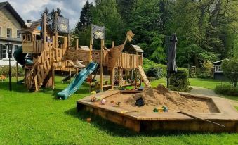 Großes, kinderfreundliches Gelände in unmittelbarer Nähe zum Wald.