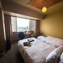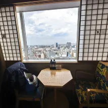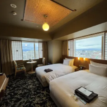 We stayed in room 1812 for a night. The room was bigger than the standard Japanese hotel rooms and the view was breathtaking. The bath house is a must try for all travellers especially the outdoor/rooftop bath. Robes are provided and allowed to be worn in the outdoor bath only. Basic amenities are provided at the lobby. There is a department store next to the hotel and a supermarket right at the train station. I highly recommend this hotel :)