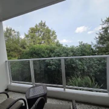 I paid extra for an "Ocean View" room, but as you can see in the photos, there was absolutely no ocean view — only trees blocking the entire view from end to end of the balcony.