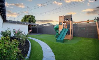 This stunning boasts 5 bedrooms and 3 baths, featuring beautiful all-new remodeling and furniture. Step into the gated backyard, where you'll find a paradise of patio furniture, a luxurious and meticulously landscaped surroundings that the owner has spent nearly 2 yrs perfecting. Just 2 mi from Disneyland, and conveniently close to Knott Berry Farm, top-notch restaurants, supermarkets, and all the attractions you desire, this is the ideal vacation spot for families groups alike.
