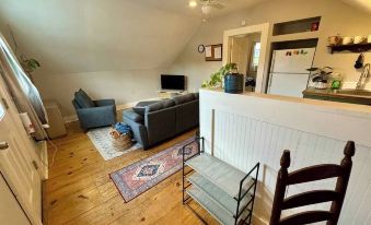 A private porch, perfect for morning coffee or evening fresh air. Guests are also welcome to enjoy the small yard, shared with our family and friendly dog—just note it’s not officially included in the rental.