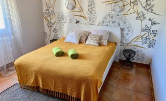Der Ausstattung hat es an nichts gefehlt, der Blick war herrlich, die Nächte kühl, die Tage warm, hell und sonnig. Zu Fuß war man schnell im Ort 5-10 Minuten), die Nähe zur Dorfstraße war so ein Vorteil. Sie ist gering befahren, in sofern auch kein Nachteil. Wir haben gut gekocht und waren mit den Rädern schnell auf den interessanten Routen, auch die Kletterberge waren schnell erreichbar.