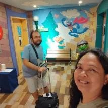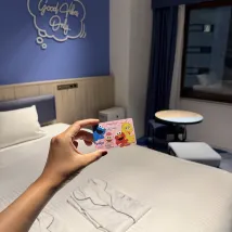 Happy about this hotel felt like a kid again with a Sesame Street theme.The buffet breakfast is good too. Had a blast on this trip with my son. The staffs were reliable when we ask for chargers for our phones and when we asked for towels as I didn't find it in our room after coming back tired from a whole day tour. They said they'll deliver it to our room. Upon coming back from our dinner found the paper bag with towels and water bottles at our door. When I came to put the towels in our bathroom, that's the time I notice there was a pair of towels already set at the other side near the sink. Felt bad about complaining that I didn't see the towels earlier, my bad.