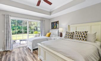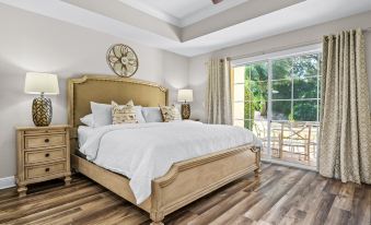 The upstairs bedroom offers an ensuite king master bedroom. The bathtub is located in the bedroom and separate standup shower. The first-floor bedroom offers an ensuite king bed, the bathroom has a large bathtub and separate stand-up shower. You will also have private access to the patio with seating for 2. Lastly, the second bedroom on the first floor offers a king bed and a full bed along with a gorgeous view of the resort's nature and patio access. All bedrooms come with a wall-mounted flat-screen TV.