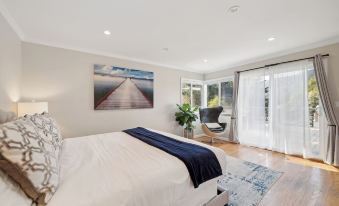 This thoughtfully designed villa is ideal for out-of-town family reunions, small team retreats, or intimate celebrations like elopements and milestone birthdays. With a heated pool, hot tub, sauna, and plenty of space to gather and relax, it feels like your own private boutique hotel—just minutes from the beach and all that the Bay Area has to offer.