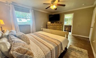 Entire HouseAbout pets:Pets allowed: dogs less than 50 lbs per pet (limit 2 pets total).About checkOut:Check out before 11:00 AM.About children:Children allowed: ages 0-17.Not responsible for Baby proofing.About checkIn:Check in after 4:00 PM.About smoking:Smoking allowed: in designated areas.About minBookingAge:Minimum age to rent: 18.About events:Events allowed: family gatherings, birthday parties, weddings.Maximum event attendees: 50.