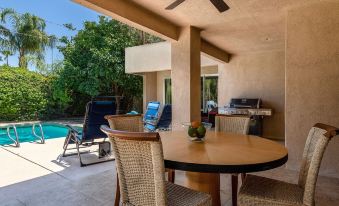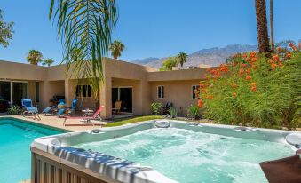 Spacious 4 bedroom 3 bathroom house in Movie Colony. One mile distance to downtown Palm Springs and all the attractions along with palm canyon strip. Two Master Suits, furnished with 1 KING and 1 Queen beds along with 65 inch tv and large bathrooms. One bathroom is equipped with hot tub and two vanities for him and her. All the rest of the baths include stand up shower. The home has an Extra Large Kitchen with Brand new refrigerator, microwave and stove. Extra drawers and pantry storage spaces all around the kitchen. Laundry room has a brand new washer.The two other bedrooms are furnished with two twin beds each. Large closets are located in each room. The living room has a sofa, loveseat and armchair, along with a 65 inch tv, large space for family gathering. The home is ideal for family vacation with kids and has an outstanding outdoor space with large pool, brand new 8 person hot tub that has amazing views of the palm spring mountains, brand new large grill that can accommodate full family, patio furniture, pool lounge chairs, and swinging sofa.