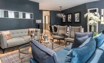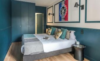 This spacious apartment offers 4 bedrooms, making it perfect for families or groups, with a mix of king, queen, and twin beds to accommodate everyone comfortably. Its prime location on the edge of Le Marais, one of Paris's most sought-after neighborhoods, provides a vibrant mix of history, culture, and nightlife. The apartment is designed with sultry blue walls and plush furnishings, creating a welcoming atmosphere that evokes the feel of an exclusive members' club.