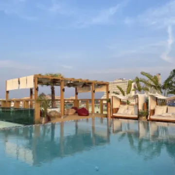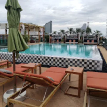 Das Hotel hat einen schönen Swimming pool auf dem Dach.
