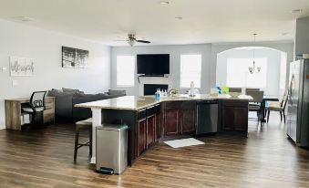 Welcome! To a beautiful, brand new Ranch Style home in Villa Rica, GA. Enjoy an open floor plan with fully equipped kitchen for your home cooked meals along with dining room, living room, fireplace and new sofa. House is baby proof and has a play room, great for kids!