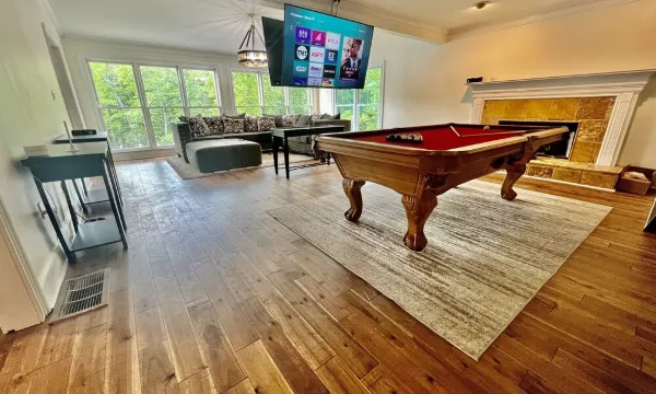 If you're looking for the soothing sound of nature while splashing in the saltwater pool, soaking up some hot tub fever, paddling around the private lake, grilling your favorite meals, or fishing. Look no further; the Chateau offers all the above and so much more. The Chateau is the perfect location for spending time with family and friends while having plenty of space to do it!