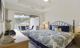The Master Suite features a King Size bed, and also features a wall of windows that opens up to the waterfront balcony. Find yourself nostalgic laying down to rest after a long day of play, listening to the sounds of water crashing on the shore. The master suite also has a large master bathroom with a double vanity and tub/shower combo with glass doors.