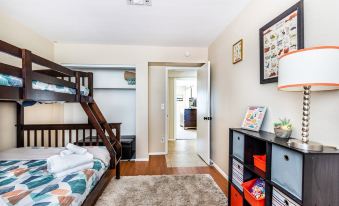 This place was amazing! The interior was cozy and clean. We were so impressed with how well stocked it was! It had a full cabinet of seasonings, enough coffee/tea/creamers/etc. to last well beyond our stay, a cabinet of board games/colouring supplies, tons of toys for the kiddos, sunscreen/aloe for those hot days, tons of pool floaties and balls, and a cute welcome basket of treats! The kids loved the bunk beds and our bed was so comfortable. The gated fence was a godsend with us having 4 kids 5 and under there. We all enjoyed the putting green as well. The pool was warm and the sunledge is so big, love it! Communication with Charity was easy and she responded fast for the couple of questions we had! 10/10 would recommend and stay here again.