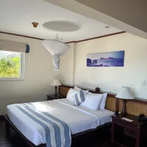 Das ist mein Lieblingsresort in Vietnam. Sie müssen Ihr Gepäck nicht selbst tragen. Es gibt ein Auto, das Sie zu Ihrem Zimmer bringt. Das Hotel ist so schön, dass ich es nicht oft genug sagen kann. Es sind nicht viele Leute da und das Wasser im Schwimmbad ist auch sehr lecker. Ich kann es nur wärmstens empfehlen Das liegt daran, dass das Resort alt ist, aber nachdem wir mit dem Kundenservice gesprochen hatten, schickten sie uns sofort einen großen Ventilator, der sehr effizient war und das Bett sehr bequem war.