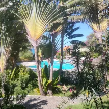 Die Anlage ist sehr weitläufig, mit zwei Swimmingpools und vielen Bäumen. Man kann sich mit einem Elektroauto fortbewegen.