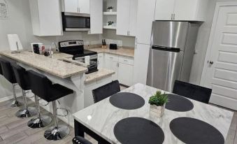 The apartment is equipped with all amenities needed to make you feel at home. This provides a full size kitchen with 2 private rooms and 2 full bathrooms. There is a total of 3 beds in the apartment. First room has 1 queen bed with a 40 inch tv. Second room has 1 king 1 queen beds with a 40 inch tv as well. The living room has a 55 inch tv to enjoy all your shows and sports, internet wifi include.