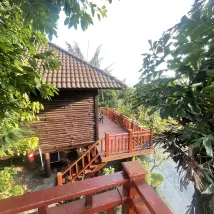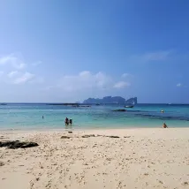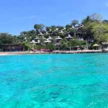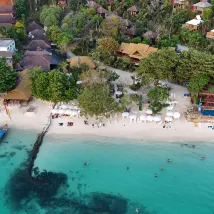 Fantastiskt läge vid stranden med fin snorkling alldeles utanför. Husen man bor i ligger i sluttningen på ett berg så var beredd på en rejäl uppförsbacke hem på kvällen. Vill man ha mer utbud på nöjesliv och restauranger ska man bo i Phi Phi tätorten!
