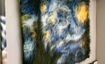 Aside from the basics like WiFi, full kitchen, work space, this unit also has some interactive play features like LED lights and a 3D wall. Artists like Andy Warhol, Alexander Calder, Basquiat, and Banksy will surround you during your stay.