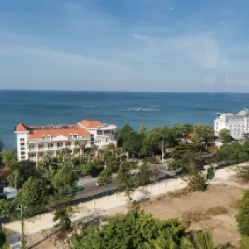 The hotel is located around 15 to 20 mins from Airport by car. It is around 10 to 15mins walk from Night Market. It is not on the main street and 1-2mins walk only. Many shops on the main street. The shuttle bus stop to Safari, Vinwonders and Grand World is just at the junction (Hiep Thoai Hotel stop), which is 1 to 2 mins walk only. The room is big enough and with sea view. Hotel Wifi is fast. Breakfast is included, mostly simple local Vietnam dishes. The breakfast is at 8th floor, with good sea view while eating. Check in and check out is fast also. Staff are friendly. Easy to call Grab car also. Only small thing is, not enough place to hang clothes in the room. The open cupboard is too small for 2 people. Can add some hangers on the wall as the room still spacious.