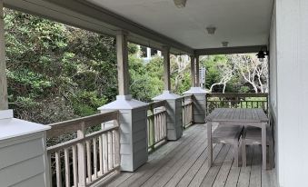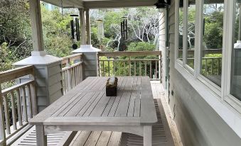 Enjoy priceless time with your family in this open and light-filled ocean oasis. Sip your coffee in the morning in rocking chairs on the covered wrap-around porch, enjoy lunch on the beachfront deck, read your favorite book or nap in the large porch hammock, sip cocktails or enjoy al fresco meals on the secluded deck or picnic table on the porch...and venture just steps away to the crystal clear ocean, sea oats, and silky sand beach. The large oceanfront deck with lounge chairs and tables is between the house and beach steps and shower. It is buffered by the Maritime forest to allow for a more private sunning experience.