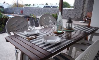 Villa Aguamarina 23B is a cozy semi-detached 80m² house with 2 bedrooms, one with a double bed with an en suite bathroom and the other with 2 single beds and a shower room, washbasin and w, c., Fully equipped independent kitchen, living room with very bright, laundry with washing machine and clothesline, parking and private heated pool, comfortable large wooden roofed terrace overlooking the pool, garden and the islands of Fuerteventura and Lobos, possibility of wi-fi connection (consult additional cost) work barbecue , solarium with sun loungers and umbrella. All this within a plot of 500 m2 fully enclosed with private garden both at the entrance by the garage and in front of the terrace and pool, located 200 meters south of Montaña Roja and 200 meters from the sea within Urbanization 'Villas Burgado 'with a lot of privacy in the southernmost area of Lanzarote called Playa Blanca near the Pechiguera Lighthouse. 3 km. of finds the leisure zone and the Port from where boats leave every hour to the Port of Corralejo in Fuerteventura or to make marine, underwater or diving excursions. 7 km away is the Marina Rubicon Marina with numerous shops and small bars / restaurants or make sea excursions or play numerous leisure games in the mall.About pets:No pets allowed.About checkOut:Check out before 12:00 PM.About children:Children allowed: ages 0-17.Es ideal para niños porque no hay escaleras..About checkIn:Check in after 4:00 PM.About smoking:Smoking is not permitted.Sólo se permite fumar en la terraza.About minBookingAge:Minimum age to rent: 25.About events:No events allowed.