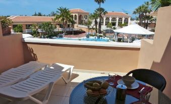 Excellent location and complex which was great value for money. 4 of us and apartment on small side but great sized balcony to relax in with sun all day and directly facing pool. Good neighbourly feel within complex and many restaurants on site and just out and along the promenade to the left. David answered any questions swiftly so all and all an excellent trip