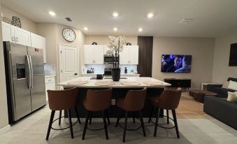 Experience tranquility in this exquisite lakefront Kissimmee townhome. Enjoy 3 bedrooms, 2.5 baths, a fully stocked kitchen, laundry room, Wi-Fi, coffee/tea station, and Samsung smart TVs in every room. Perfect for families, traveling nurses, or remote workers. Minutes from shops, restaurants, and 40 minutes to Disney. This beautifully designed home has everything you need for a restful, long-term stay.About pets:No pets allowed.About checkOut:Check out before 11:00 AM.About children:Children allowed: ages 0-17.About checkIn:Check in after 4:00 PM.About smoking:Smoking is not permitted.About minBookingAge:Minimum age to rent: 21.About events:No events allowed.