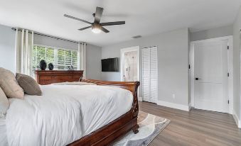 Welcome to the Rose House – your beautifully renovated home-away-from-home in Port Saint Lucie. Designed with comfort and simplicity in mind, this chic yet cozy escape offers everything you need for a relaxing and memorable stay. Step inside to an open, light-filled floor plan that flows seamlessly from the welcoming entryway through the stylish living and dining areas and into a fully equipped kitchen. With brand-new appliances, an oversized island perfect for gathering, and all the essentials for cooking and entertaining, this space is made for both everyday meals and special moments. Each of the three bedrooms is generously sized, featuring large closets, comfortable furnishings, and thoughtful design touches to make you feel right at home. The spacious primary suite includes a private en suite bathroom for added comfort and privacy, while the two additional bedrooms share a stylishly updated full bath. Whether you're traveling with family or friends, the layout offers both convenience and a sense of personal space. A two-car garage and in-home laundry area add to the ease and functionality of your stay. Out back, you’ll find a tranquil, enclosed patio—an ideal spot to sip your morning coffee or wind down in the evening. The home is just 12 minutes from the beach and located near scenic preserves and nature parks, making it a perfect base for both adventure and relaxation. Whether you’re planning a family vacation, a romantic escape, or a peaceful remote work getaway, the Rose House is a must-stay gem in Port Saint Lucie.