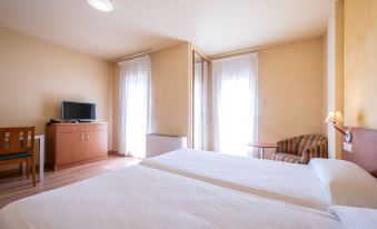 This is an excellent FAMILY run hotel, 3 star hotel.It has kitchens on each floor too for guests to use. The dinner is really good and the chef is excellent. I loved my evening meal, breakfast is equally plentiful. The staff like cyclists and walkers too and the place is very accommodating for these types of travellers, there is ample bike storage in the garage down stairs, there is also laundry facility too, they give you a key to use the room. There is nothing to dislike and it’s a treat to be here for sure, there is a supermarket nearby and pharmacy too. If your cycling or motorbike or travelling then this is a hotel you can enjoy and it’s a good base for the area.